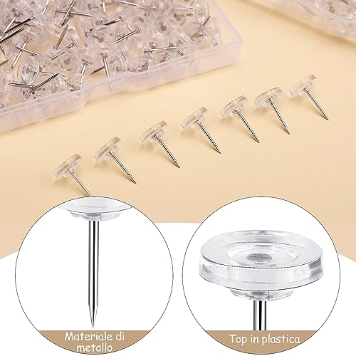 200 Pezzi Puntine Disegno con Testa, Puntine da Disegno Trasparenti, Decorative Puntine con Scatola di Immagazzinamento per Lavagne di Sughero, Pavimento, Lavagna, Decorazione di Pannelli