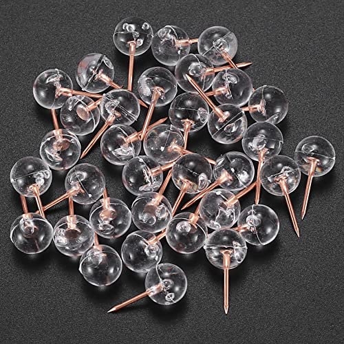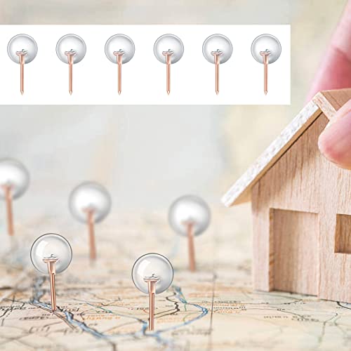 200 Pezzi Puntine da Disegno, Puntine Trasparenti Teste Tonde in Plastica in Oro Rosa, Puntina da Mappa con Punte, per Bacheca in Sughero Mappa Lavagne Parete in Sughero