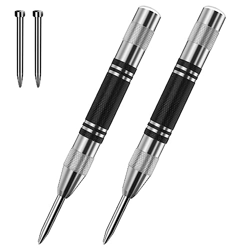 2 Pezzi Punzone Centrale Automatico, Punzone Centrale Automatico con 2 Punte di Ricambio, Punzoni Centrali a Tensione Regolabile Punzone Centrale Automatico a Impatto per Legno, Parete, Metallo, Vetro