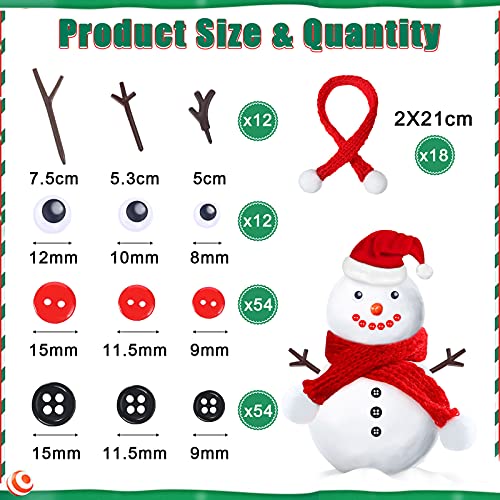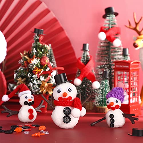 450 Pezzi Kit Fai da Te con Pupazzo di Neve Natalizio Incluso Mini Cappelli Occhi di Plastica Nasi di Carota Rami Mani Piccoli Bottoni Rossi Neri Sciarpe Lavorate a Maglia