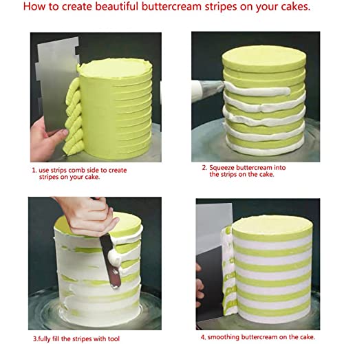 Molteplici applicazioni: questi diversi tipi di raschietti per torte, è possibile utilizzare la glassa più liscia per creare bellissimi bordi per torte e torte personalizzate in base al tuo favore, e puoi utilizzare il raschietto multiuso per spalare, raschiare, tagliare panna, torte, formaggio, pane, biscotti, cioccolato, pasta, pasta fondente, pizza, ecc, per offrirti più divertimento e convenienza