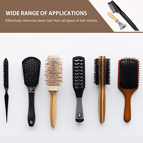 2 Pezzi Rastrello per Capelli Strumento Pettine di Pulizia Spazzola per Capelli Mini Spazzola per Rimozione di Polvere di Capelli Uso Domestico e Professionale (Rastrello con Manico in Legno Lucido)