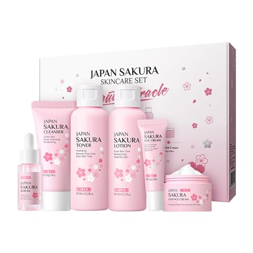 5 pezzi Set Regalo Per La Cura Della Pelle Set Di Cura Pelle Sakura Kit Skincare Viso Completo Tutti I Tipi Di Pelle Regali Per Ragazze Adolescenti Donna