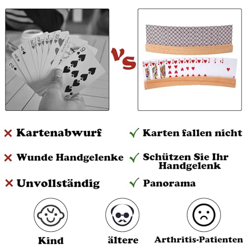 2 Pezzi Reggi Carte da Gioco, Mani Libere Base in Legno, Lunghezza 33 cm, Reggi Carte Idoneità Anziani, Bambini, Disabili
