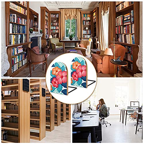 2 pezzi reggilibri,fiori di ibisco tropicale esotico hawaiano in tronchi di legno estivi reggilibri,supporti fermalibri antiscivolo,fermalibri per libri/film/CD/videogiochi