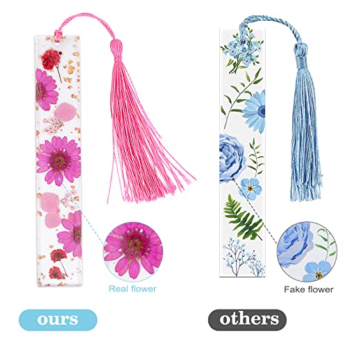 4 Pezzi Resina Fiori Segnalibri Fatti A Mano Naturale Secco Fiore Segnalibro per Bambini Donna Insegnante Studente Lettura Planner Libro Club (Combinazione 1)