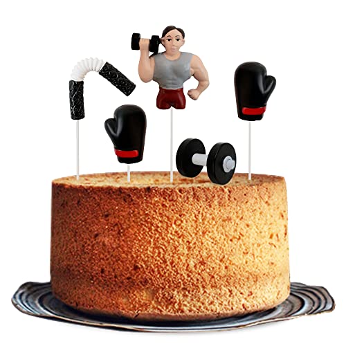 5 pezzi in resina 3D per sollevamento pesi, allenamento torta con bilanciere, guantoni da boxe Nunchaku, decorazione per torte, bodybuilding, fitness, palestra, decorazione per torta di compleanno