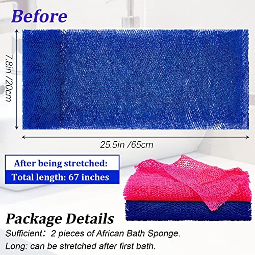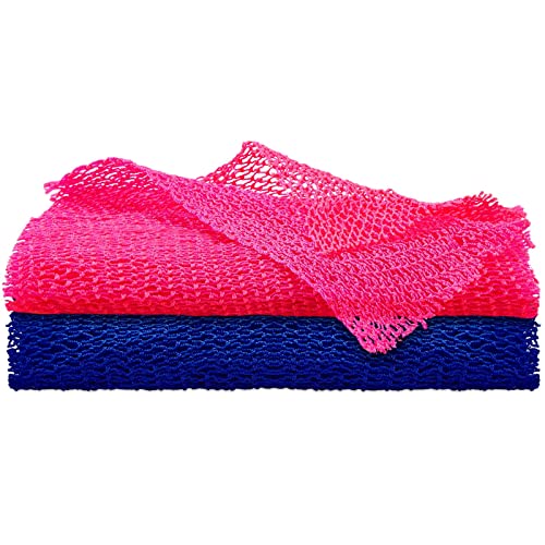 2 Pezzi Rete Africana Rete Esfoliante per Corpo Africano Spugna a Rete Africana Scrub Esfoliante per Corpo da Doccia Scrubbing di Schiena Levigante di Pelle per Quotidiano (Blu Scuro, Rosa)