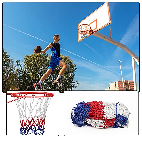 2 Pezzi Rete da Basket Standard,Professionali per Canestro da Basket Adatte alle Dimensioni di Un Canestro Standard 12 Buchi per Basket,Portatile e Pieghevole,per Interni ed Esterni(Rosso Bianco Blu)