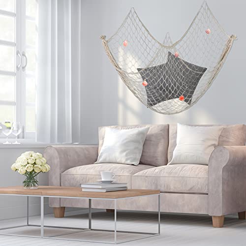 2 Pezzi Rete da Pesca Decorativa Muro con Conchiglie Decorazione Marina per la casa, il ristorante, il bar, le feste (200 x 150 cm e 200 x 100 cm)