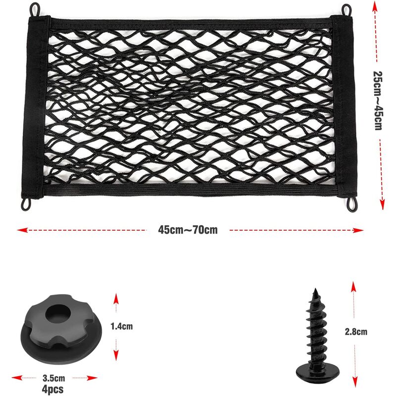 La confezione perfetta: 1 rete portaoggetti per seggiolino auto, 4 ganci e 4 viti, in grado di soddisfare le tue diverse esigenze. Espandibile: la dimensione della borsa della rete del bagagliaio dell'auto è 45 * 25 cm, la dimensione della maglia è 3 * 2,5 cm, la corda elastica su quattro lati può essere allungata del 50% e la dimensione massima è 45 * 70 cm. Materiali di alta qualità: realizzati in poliestere di alta qualità, rete elastica spessa a doppio strato, Punti rinforzati a forma di Z, buona elasticità, non facile da danneggiare e resistente. Facile da installare: la rete portaoggetti del seggiolino auto è semplice da usare e non deve utilizzare solo ganci accessori per l'installazione. Scopo: la custodia in rete può essere installata accanto al seggiolino dell'auto o nel bagagliaio dell'auto.Può posizionare i tuoi prodotti elettronici, libri, bottiglie d'acqua, ecc., Per aiutarti a organizzare e conservare, e non occupa spazio in auto. Tieni presente che a causa di A causa
