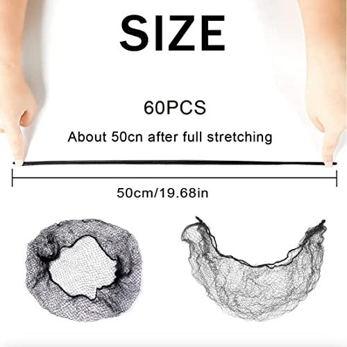 60 Pezzi Di Retina Per Capelli, Reti Per Capelli Invisibili Chignon Per Capelli Rete Per Capelli Con Bordo Elastico Nero per Danza Infermiera e Così Via