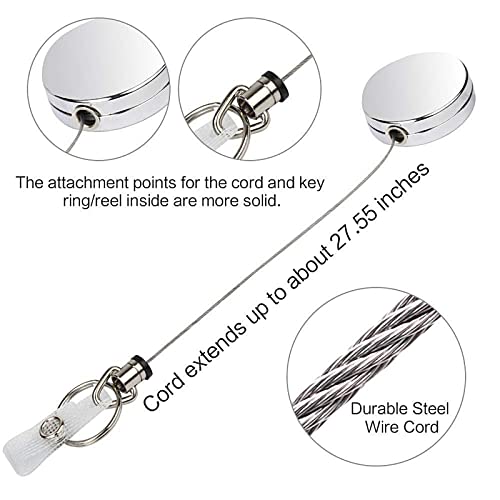 【Heavy Duty】: il peso massimo di caricamento è 120 g/4,5 once o 8 chiavi rispetto a 85 g/3 once o 4 chiavi di altri articoli sul mercato. Viene fornito con portachiavi e funziona perfettamente come portachiavi retrattile. Ogni porta badge ha un peso di 48 g. Design in lega di metallo-zinco, acciaio resistente alla corrosione, resistente all'usura, durevole e addensato.