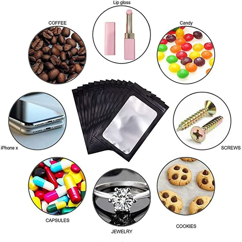 Borsa a prova di odore richiudibile da 100 pezzi per la conservazione degli alimenti Cerniera richiudibile: i sacchetti a prova di odore mantengono tutta l'acqua, l'umidità e gli odori all'interno in modo da ottenere un effetto di conservazione e possono essere riutilizzati. Facile da usare: Il design semplice della cerniera è facile da aprire e sigillare, il design della finestra trasparente consente una rapida visualizzazione dei contenuti all'interno. Applicazioni estese: Per confezionare caramelle, pillole, biscotti, noci, frutta secca, snack o lucidalabbra, gioielli, accessori elettronici, ciondoli artigianali, ecc. Contenuto della confezione 7 x 10 cm: 100 buste Ziplock richiudibili