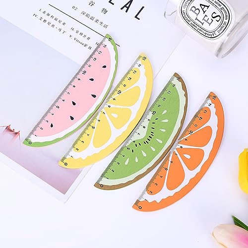 Design creativo della frutta: il righello di legno adotta la forma di anguria, arancia, limone e kiwi. Il righello ha una scala totale di 15 cm e una distanza minima di 1 cm. La forma del righello è creativa e più accattivante.