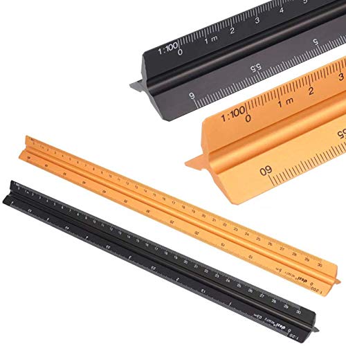 2 Pezzi Righello Triangolare in Alluminio, Righello in Scala di Metallo da 30 cm, 1:20:25:50: 75: 100: 150, 1: 100: 200: 250: 300: 400: 500, Ideale per Scuola, Casa e Ufficio