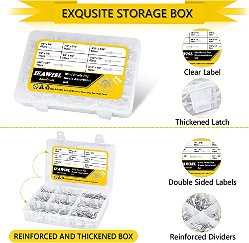【RIVETTI BILND DI ALTA QUALITÀ】: IEAWISL Tutti i rivetti ciechi sono realizzati in lega di alluminio di alta qualità, resistente alla ruggine e alla corrosione. I rivetti IEAWISL sono perfetti per l'uso con rivettatrici, facili da rivettare e durevoli.