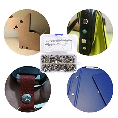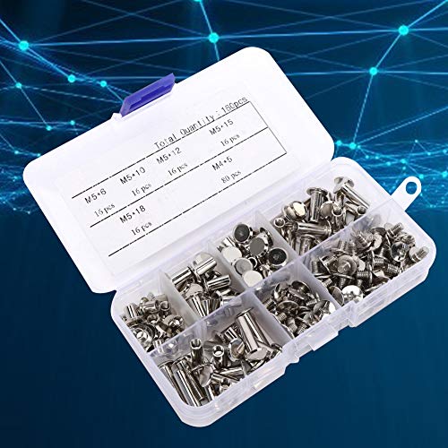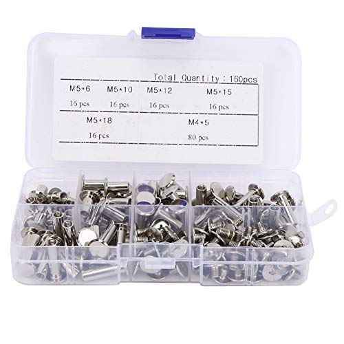 160 pezzi rivetti per chiodi a vite elementi di fissaggio, rivetti in pelle con perno a vite, viti per rilegatura a testa Phillip con intaglio rotondo in metallo rivetto per album fai da te