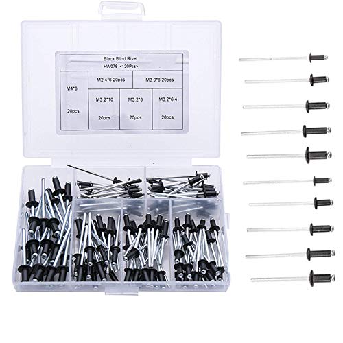 120 pezzi Rivetti ciechi in alluminio, Rivetti a Strappo Neri Rivetti a Strappo con Custodia Rivetti in Alluminio per Kit Assortimento di Mobili, Kit Assortito (M2.4 M3.0 M3.2 M4)