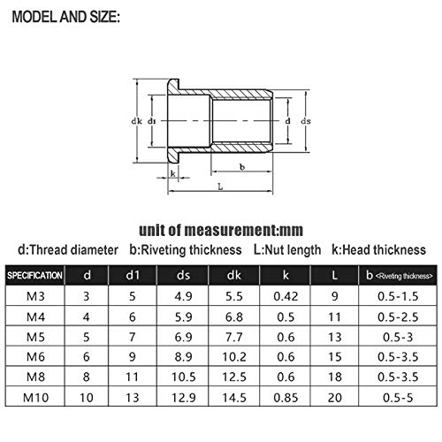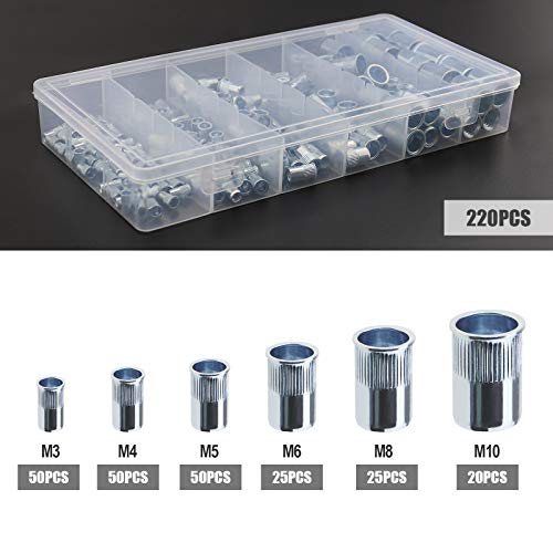 220 pezzi Rivnut assortiti Kit zigrinato acciaio seghettato ridotto (M3 M4 M5 M6 M8 M10) - Testa svasata