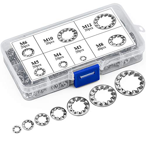 270 Pezzi Rondella Sicurezza Interni Stella, 7 Dimensioni M3 M4 M5 M6 M8 M10 M12 Kit Assortimento di Rondelle Dentate di Blocco a Stella, in Acciaio inox 304