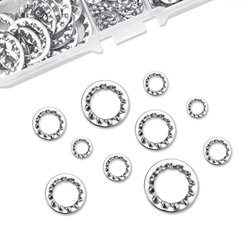 300 Pezzi Rondelle Dentellate, Rondelle Dentate Esterne Set, Rondelle di Bloccaggio in Acciaio Inox, Otto Diverse Dimensioni Delle Specifiche, con Scatola di Imballaggio in Plastica