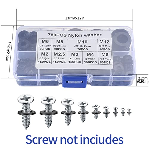 【Cosa ottieni】 Riceverai 780 pezzi di rondelle in nylon in 9 dimensioni di M2 / M2,5 / M3 / M4 / M5 / M6 / M8 / M10 / M12 che è sufficiente per il tuo uso quotidiano e può soddisfare le tue diverse esigenze.