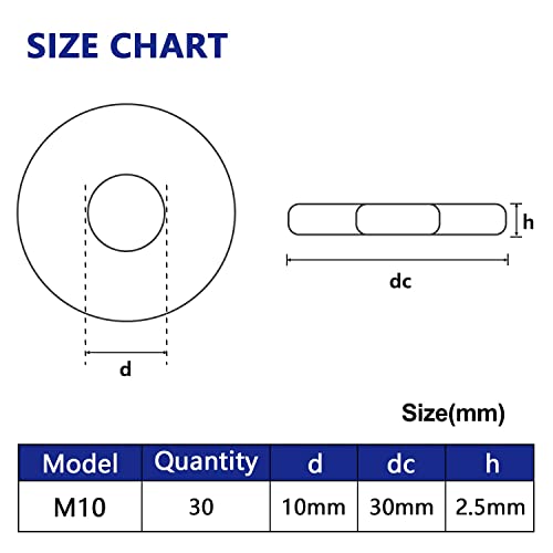 30 pezzi M10 Rondelle Piatte, DIN 9021 Rondella Piana, Rondella in Acciaio Inox per Viti Tenuta