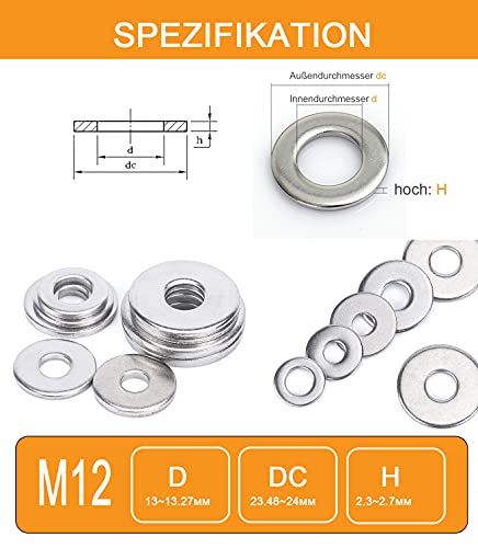 20 pezzi rondelle piatte grandi M12 rondelle DIN 125 A2-70 in acciaio inox rondelle per carrozzeria rondelle piatte
