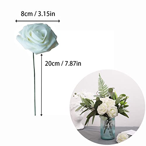 25 Pezzi Rose Artificiali in Bianche Avorio, Set Rose Artificiali Sposa Bianche, Set Rose Artificiali per Bouquet Fai Da Te, per Matrimonio, Salotti, Ufficio, San Valentino