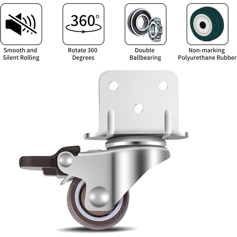 Protezione del suolo: È avvolto in un morbido materiale in poliuretano per garantire che non ci siano graffi o segni sul pavimento ed è facile da spostare. Sicurezza - Cinque fori di montaggio orizzontali servono per fissare la guida e non si deformano facilmente. . L'angolo è allargato per rendere la piastra di montaggio più stabile. Piastra di montaggio a forma di L intima per risparmiare spazio e facile da installare. I cinque fori di fissaggio recentemente aggiornati fissano la guida in direzione orizzontale e non si deformano facilmente. Gli angoli sono rinforzati per rendere la piastra di montaggio più stabile. Robusto e durevole - Ogni ruota è dotata di cuscinetti a sfera di alta qualità. Elevata capacità di carico: La capacità di carico di ogni ruota è di 10 kg. Molte possibilità di utilizzo: Tipicamente utilizzato per piccoli progetti e trasloco di mobili, inclusi toeletta, casse, contenitori sotto il letto, scarpiere, scatole per giocattoli, armadi, librerie, cavalletti