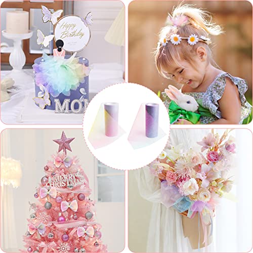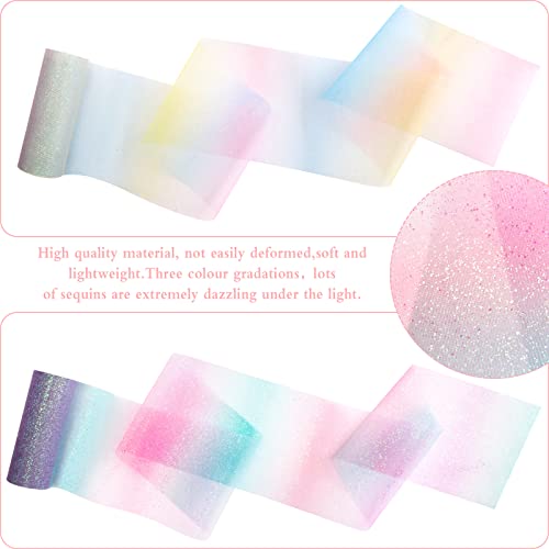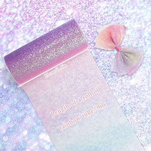 2 Pezzi Rotolo di Nastro di Tulle Glitterato Color Arcobaleno15cmx9m Ciascuno,Rotolo di Tulle sfumato Nastro Tulle ArcobalenoTulle per Matrimonio Decorazione Tutù Gonne Decorazione Fai da Te