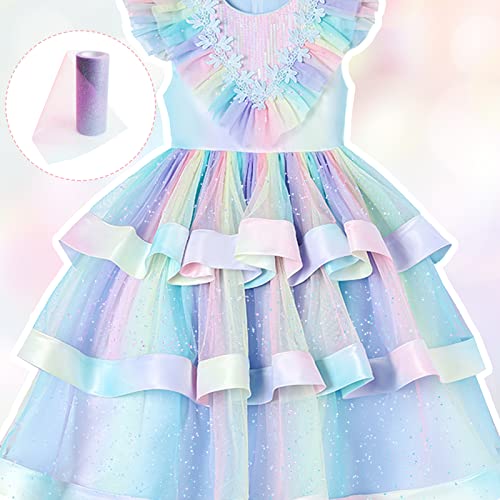 ✿【Facile da modellare】:I rotoli di tulle con glitter arcobaleno sono realizzati in tulle di alta qualità, molto morbido, con un buon drappeggio, non facile da raggrinzire, facile da modellare;