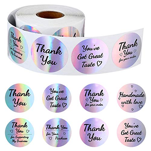 500 pezzi 1,5 rotondo glitter argento pollici grazie rotoli adesivi aziendali grazie etichette adesivi forma rotonda adesivi adesivi olografici buste fai da te sigillare