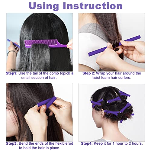 40 Pezzi Rulli Per Capelli In Schiuma Di Torsione(24x1,2 cm) Bigodini Flessibili Capelli Di Aste Flessibili Per Arricciare + 2 Pezzi Pettine + 1 Pezzi Artiglio dei Capelli