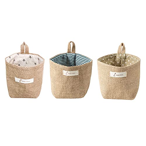 3 Pezzi Sacca Portaoggetti Appesa Borsa, Cotone Lino Cestino Bag, Borsa portaoggetti in Iuta, Pieghevoli borse portaoggetti da appendere, Utilizzato in giocattoli, cosmetici, piccoli oggetti