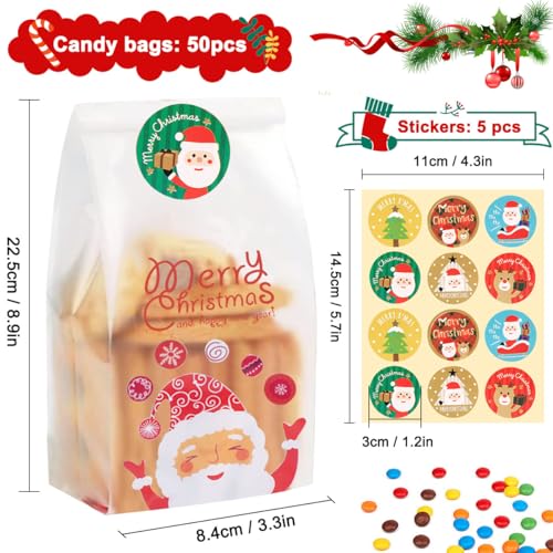 50 Pezzi Sacchetti di Biscotti di Natale, Sacchetti per Regali Trasparenti con Adesivi, Sacchetti Caramelle Natale, Sacchetti di Cellophane Natalizio per Caramelle, Biscotti, Cioccolatini, Regalo