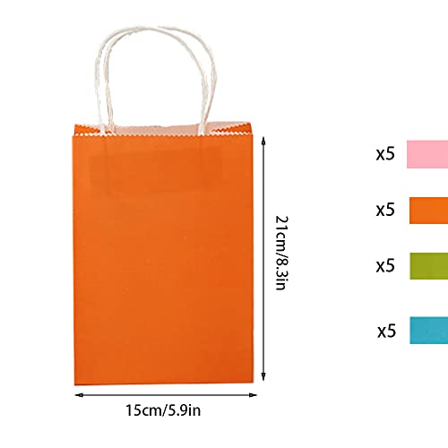 20 Pezzi Sacchetti Carta Kraft, Borse Di Carta Colorate, Borse Carta con Manico, Feste Borsa Regalo Kraft, Alta Capacità per Feste, Matrimoni, Celebrazioni e Dolci 15x8x21 cm (4 Colori)