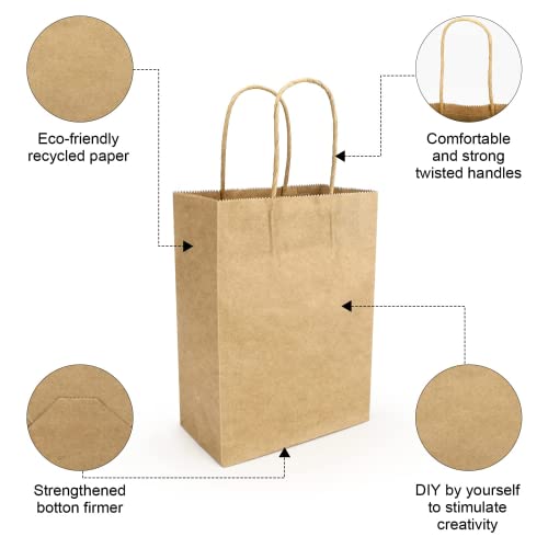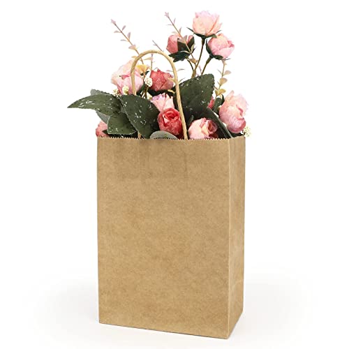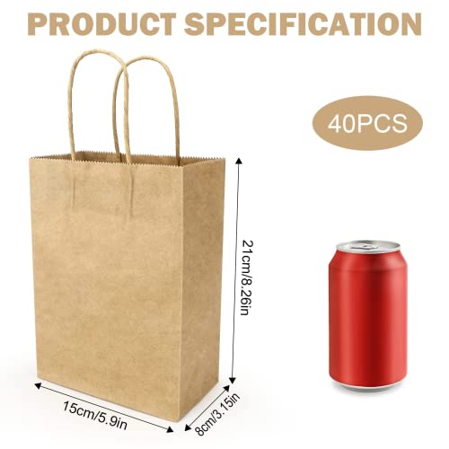40 Pezzi Sacchetti Carta con Manici, Sacchetti di Carta Kraft, Sacchetti Regalo Carta per Cottura, Feste di Compleanno, Natale, Regali, Shopping, 21x15x8cm (Marrone)