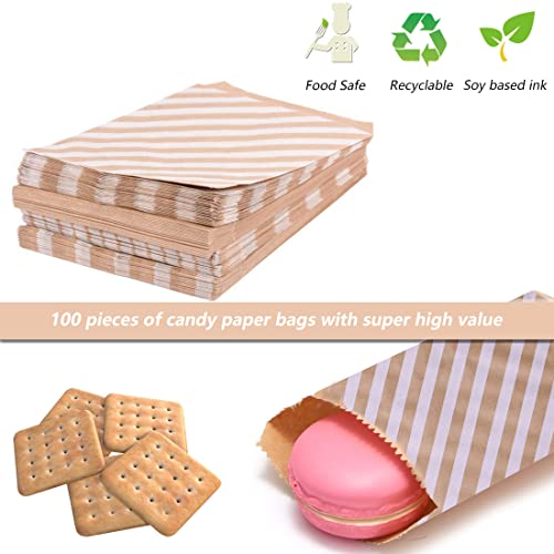 100 Pezzi Sacchetti Di Carta Marrone Kraft, Sacchetto Carta Alimenti, Bustine Carta, Sacchetto Regalo Di Caramelle Di Pane, Sacchetti Pranzo, Per Compleanno Nozze Festa, 13x18cm, Strisce Diagonali
