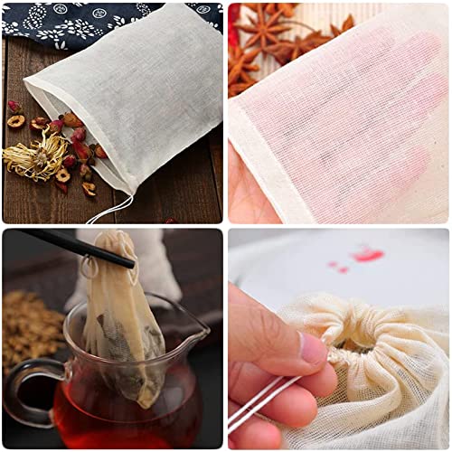 50 Pezzi Sacchetti Filtro per Tè, Bustina di Tè Vuota, Sacchetto Filtro A Sacco in Rete, Riutilizzabile Sacchetti con Coulisse in Mussola di Cotone per Succo di Frutta, Caffè, Cucinando (6 * 8 Cm)