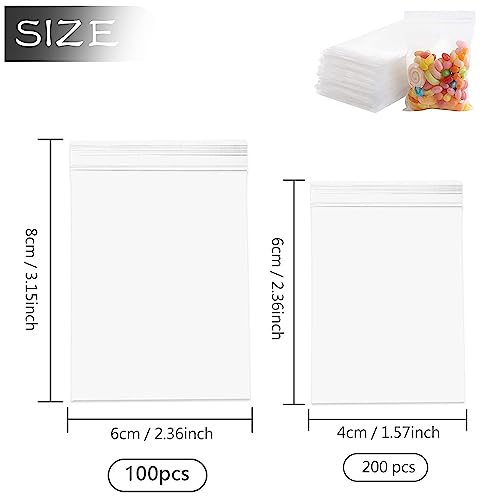 【Quantità sufficiente】 Questo set di sacchetti con cerniera include 300 sacchetti con chiusura lampo in 2 diverse dimensioni: 200 pezzi 4 x 6 cm, 100 pezzi 6 x 8 cm.