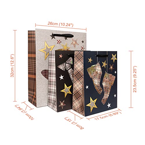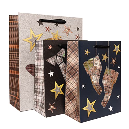 3 Pezzi Sacchetti Regalo di Carta, Sacchetti di carta medi e grandi con eleganti sacchetti regalo con manici per Bambini Feste di Compleanno/Matrimoni/Mercati/Negozi/Caffè(32 * 26 * 10 CM)