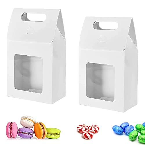 20 Pezzi Sacchetti Regalo Carta, Scatole Di Carta Creativa, Scatole Di Caramelle Di Carta, Sacchetti Regalo Con Manici, Sacchetti Regalo Con Finestra, Per Incartare Regali, Dolci, Biscotti (Bianco)