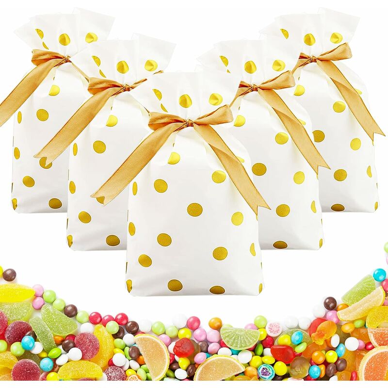 Taglia - La dimensione del sacchetto di caramelle è 12 * 17 * 6 cm / 4,72 * 6,69 * 2,36 pollici, riutilizzabile, leggero, adatto per regali di Natale, biscotti, caramelle, cioccolatini, piccoli giocattoli e piccoli regali [Design con coulisse] Il design con coulisse della borsa dei biscotti lo rende facile da aprire e chiudere. Ti aiuterà a conservare le caramelle che hai ricevuto ad Halloween e a Natale. È anche un'ottima scelta per confezionare caramelle che devono essere regalate [Materiale per uso alimentare] Il sacchetto regalo è realizzato in materiale PE di alta qualità, comodo al tatto, nessun odore particolare, ecologico e può essere a diretto contatto con gli alimenti [Packaging] Riceverai 50 sacchetti regalo di caramelle, colore uniforme, mantenendo l'integrità;