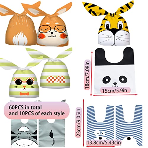 60 Pezzi Sacchetti Regalo,6 Design Animale Sacchetti da Regalo, Sacchetti di Caramelle Con Orecchie da Coniglio, Sacchetti di Biscotti Di Natale, Sacchetti Per Feste