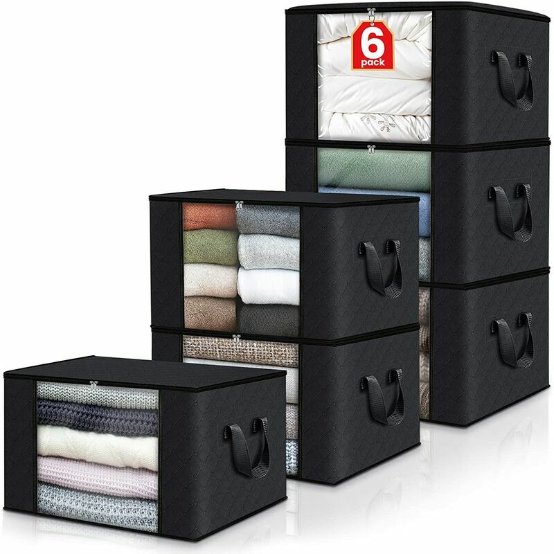 Tessuto Premium - Confezione da 6 organizer per organizzare i vestiti con una capacità di 60 litri. L'organizer per abiti è realizzato in tessuto non tessuto di alta qualità, inodore e traspirante, per proteggere i tuoi vestiti da polvere e umidità. Ogni custodia per coperte misura 21,65 x 13,78 x 12,40 pollici. Queste borse portaoggetti sono facili da trasportare e trasportare quando si spostano o si caricano oggetti pesanti. [FINESTRA E PULIZIA] La finestra frontale trasparente consente di vedere rapidamente cosa è conservato nella borsa. Durante la pulizia, pulisci semplicemente i vestiti con un panno umido e lasciali asciugare all'aria. La cerniera in acciaio inossidabile è robusta e non facile da rompere, garantendo la longevità della tote bag. [Adatto a molte occasioni] Il contenitore può essere utilizzato non solo per il guardaroba della camera da letto, ma anche per i giocattoli della cameretta, dormitorio per studenti, deposito attrezzi, deposito asciugamani, pratico