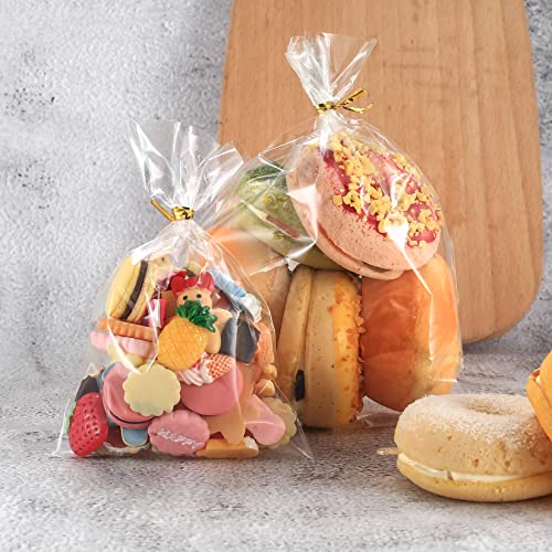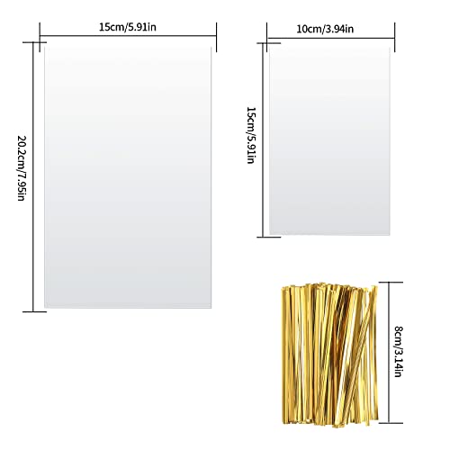 200 Pezzi Sacchetti Trasparenti per Caramelle, Sacchetti di Cellophane, Bustine per Biscotti, Sacchetti Piatti per Bomboniere, Regali di Compleanno, Caramelle, con 200 Lacci Metallici - 2 Misure