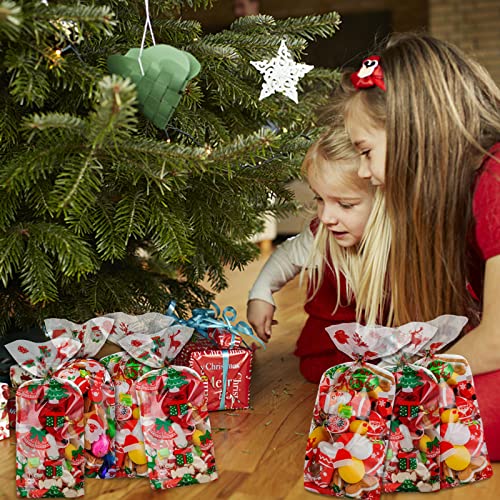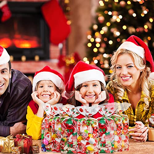 【Materiale Premium】: I Sacchetti Regalo Per Feste di Natale Sono Realizzati In Plastica Opp, Insipidi E Non Tossici, Leggeri, Sicuri e Salutari, I Lacci Intrecciati Sono Realizzati In Filo di Ferro, Resistenti E Flessibili, Facili Da Attorcigliare, Assicurano Che Il Cibo Rimanga Delizioso Più A Lungo.