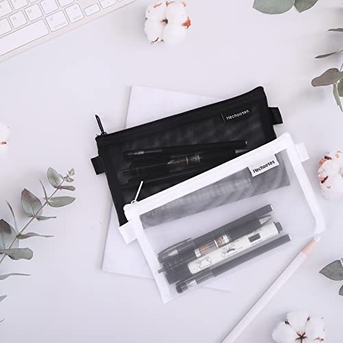 2 Pezzi Sacchetto di Matita Trasparente Astuccio Matite in Rete Con Cerniera Astucci Trasparenti per Matite Borsa per cosmetici Borsa da toilette in rete Trasparente Astuccio Portamatite Bianco Nero